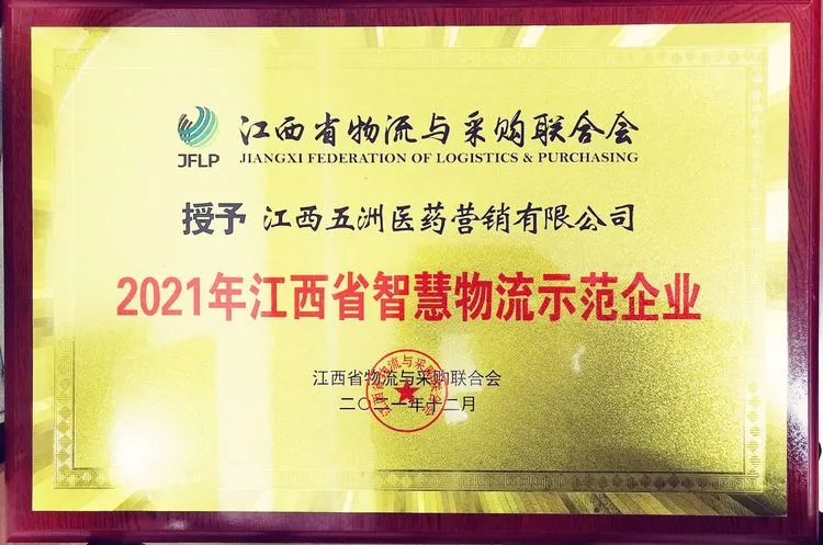 五洲醫(yī)藥獲2021年江西省智慧物流示范企業(yè)稱號